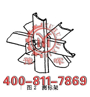 (1)在要測量的部位設(shè)測標(biāo)架(圖2),測標(biāo)架由四根槽鋼構(gòu)成,中心開?80-?100毫米孔,孔面以帶鉸鏈的金屬翻板覆蓋。測標(biāo)架可使用簡體段節(jié)在運輸中的支撐裝置。